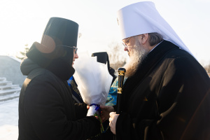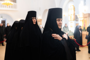 Со словом приветствия к владыке митрополиту обратилась настоятельница Свято-Иверского женского монастыря игумения Рахиль (Ковалева), поблагодарив Его Высокопреосвященство за помощь обители и молитвы о пастве.